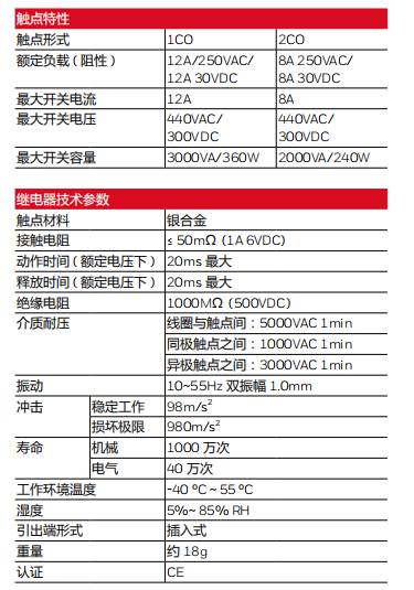 繼電器技術(shù)參數(shù)