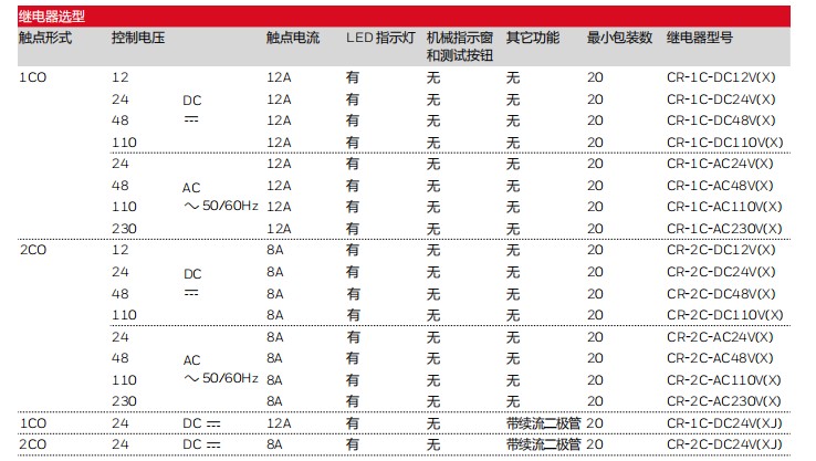 CR...(X)繼電器除了在保留CR繼電器體積小、容量大的特點以外,還進(jìn)一步擴(kuò)充了一組觸點型號的產(chǎn)品(包括配套使用的底座和附件),使產(chǎn)品線更加豐富和全面。