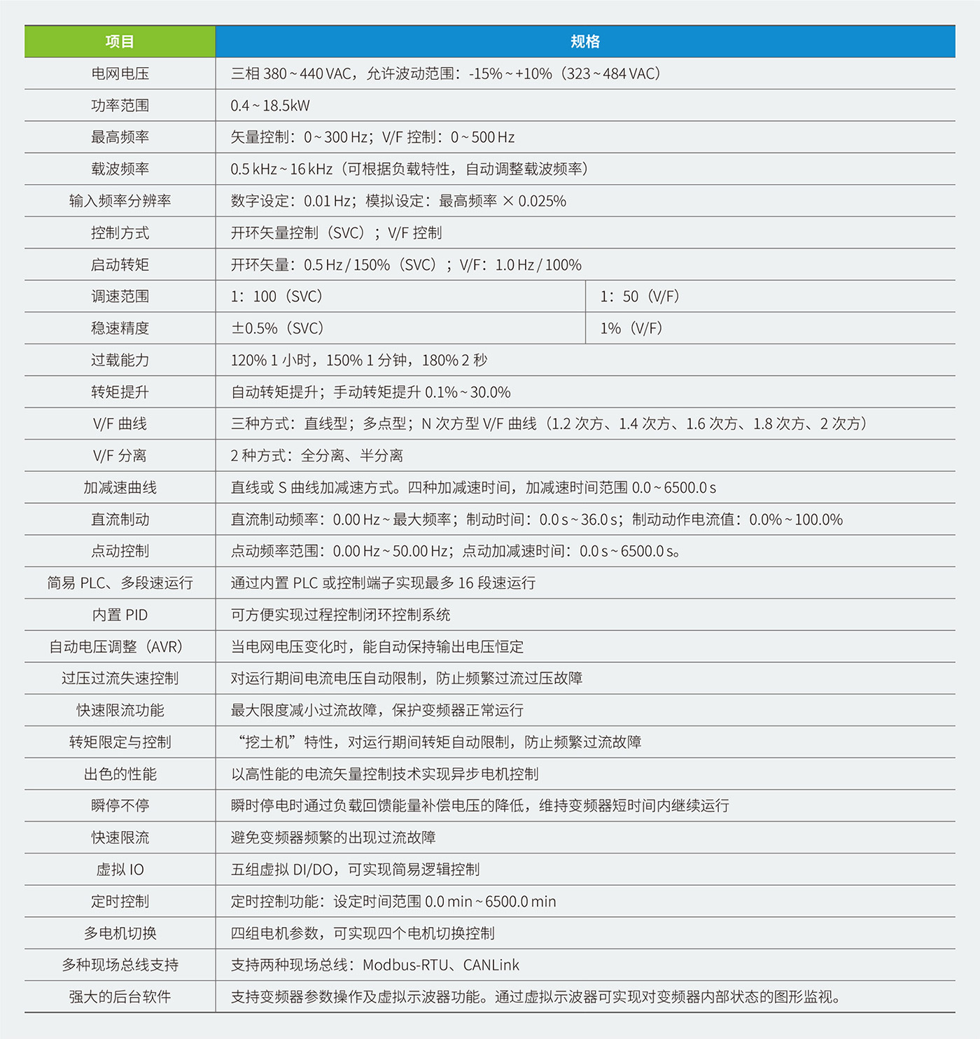 MD310系列變頻器是一款通用緊縮型多功能變頻器,采用開環矢量和V/F 控制方式,以高性能的電流矢量控制技術可實現異步電機控制。MD310 標配RS485 通訊接口,支持Modbus RTU 通訊,可擴展I/O 擴展卡、CAN 通信擴展卡。內置PID 可方便實現閉環過程控制系統,最多可實現16 段速運行。